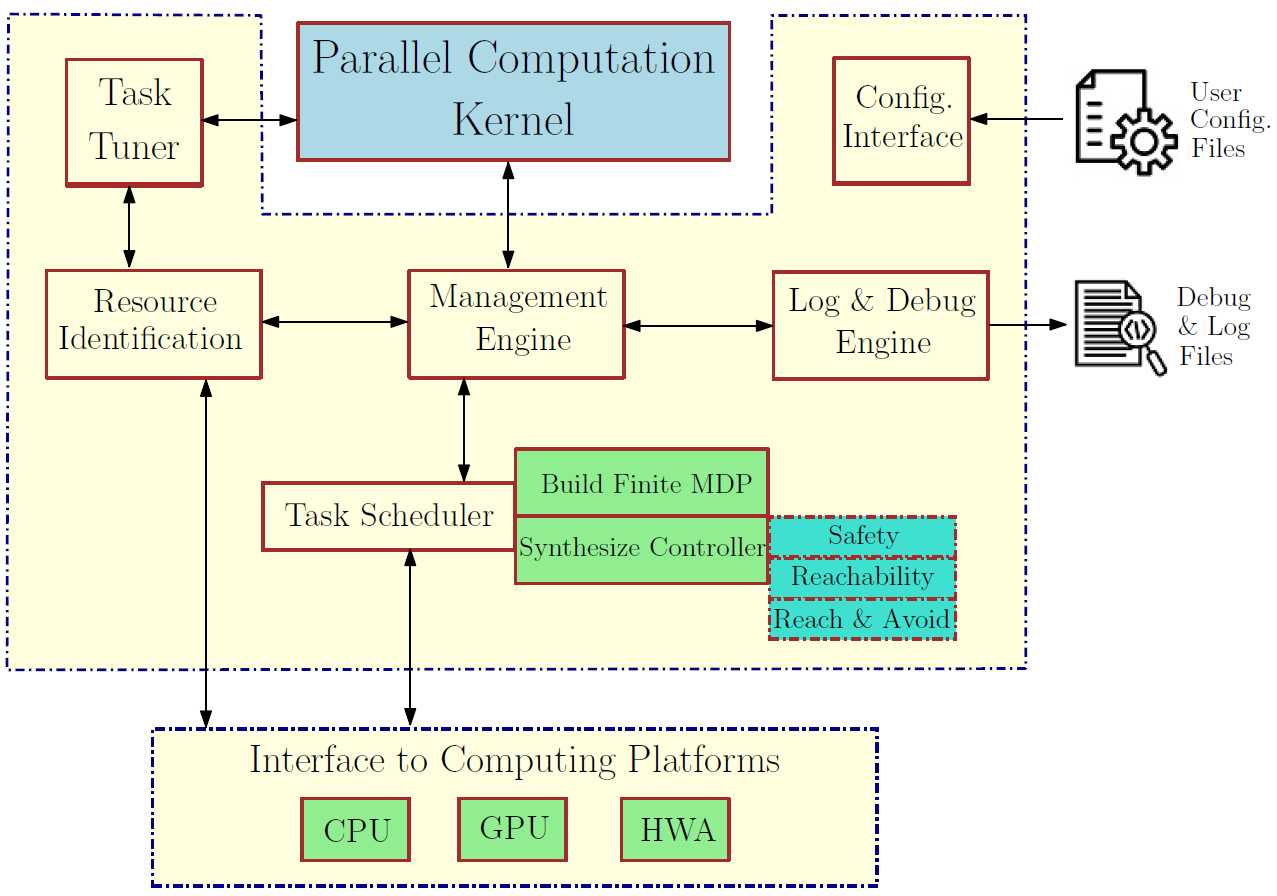 Support Please report any problems/bugs you face while installing and running IMPaCT to Abolfazl Lavaei or Ben Wooding. AMYTISS: Parallelized Automated Controller Synthesis for Large-Scale Stochastic SystemsAMYTISS is an advanced software tool developed in C++/OpenCL that provides parallel automated controller synthesis for large-scale discrete-time stochastic control systems which is absolutely crucial in many safety-critical applications. This tool allows to:
