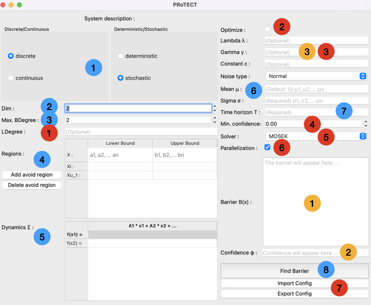 Support Please report any problems/bugs you face while installing and running TRUST to Abolfazl Lavaei or Jamie Gardner. PRoTECT: Parallelized Construction of Safety Barrier Certificates for Nonlinear Polynomial SystemsPRoTECT is an advanced open-source software tool for the parallelized construction of safety barrier certificates (BCs) for nonlinear polynomial systems. This tool employs SOS optimization programs to systematically search for polynomial-type BCs, while aiming to verify safety properties over four classes of dynamical systems: (i) discrete-time stochastic systems, (ii) discrete-time deterministic systems, (iii) continuous-time stochastic systems, and (iv) continuous-time deterministic systems. PRoTECT is implemented in Python as an application programming interface (API), offering users the flexibility to interact either through its user-friendly graphic user interface (GUI) or via function calls from other Python programs. PRoTECT leverages parallelization across different barrier degrees to efficiently search for BCs, aiming to satisfy the desired safety specifications. It supports normal, uniform, and exponential noise distributions for discrete-time stochastic systems, as well as Brownian motions and Poisson processes for continuous-time stochastic models. In stochastic settings, PRoTECT automatically optimizes the safety confidence level while designing different decision variables, including level sets of BCs. We utilized PRoTECT across various real-world applications, including a room temperature regulation, a jet engine, a DC motor, a Van der Pol oscillator, a two-fluid tank, and an 8-dimensional system to showcase the scalability. This expansion broadens the applicability of formal method techniques to encompass safety-critical applications across different model classes. The results highlight significant improvements in computational efficiency. Download PRoTECT is an open-source tool and can be downloaded from its GitHub repository. Tool paper